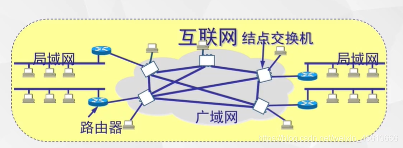 相距较远的局域网通过路由器与广域网相连组成了一个覆盖范围很广的互联网