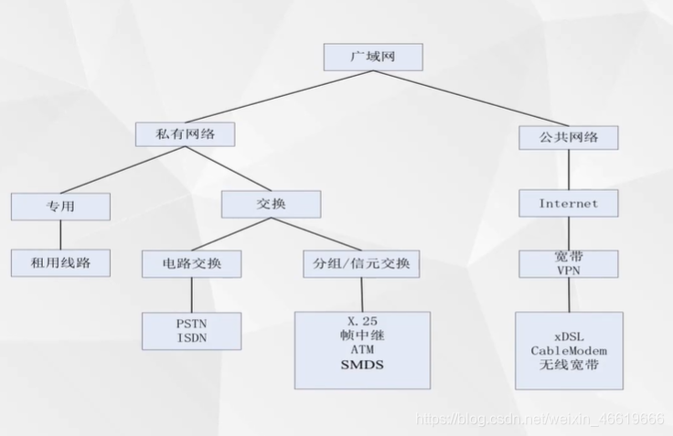 - 广域网:覆盖范围大,传输距离远,传输率低,误码率高