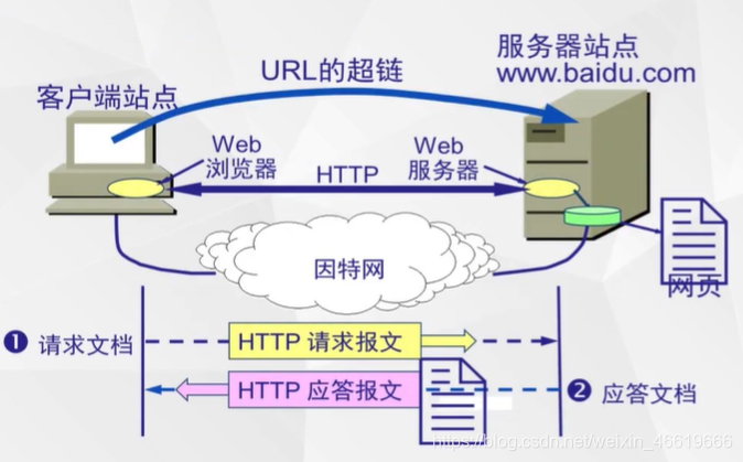 - 网页传输:web浏览器与web服务器之间,使用超文本传输协议(HTTP)进行传输,实现超链接