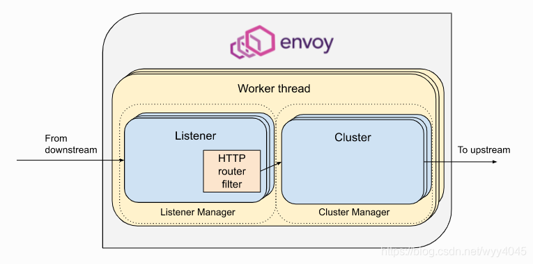 envoy通过启动一个服务器server来工作,该server由各种组件组成,这里最关键的组件就是用于管理系统中的监听器listener的监听管理器ListenerManager,用来管理集群cluster的集群管理器ClusterManager,? server在初始化时会初始化这些组件。