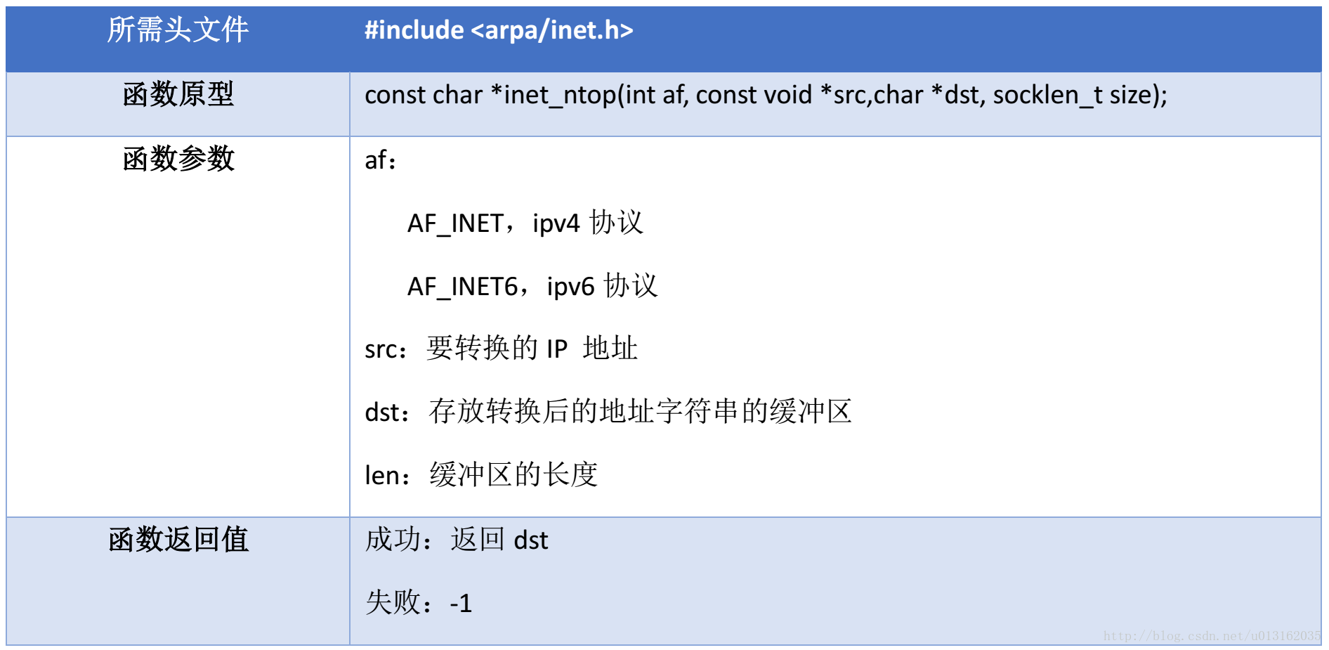 这里主要介绍IPV4地址转换函数,主要有 inet_addr() 、inet_aton() 、inet_ntoa() 。前两者的功能都是将字符串转换成32位网络字节序二进制值,第三个将32位网络字节序二进制地址转换成点分十进制的字符串。