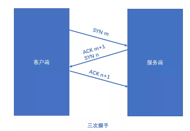 具体示意图为:  这里的SYN和ACK都是标志位,其中SYN代表新建一个连接,ACK代表确认。其中m、n都是随机数。具体说明如: