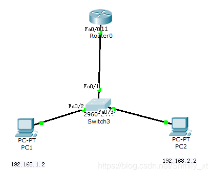 当交换机设置两个 Vlan 时,逻辑上已经成为两个网络,广播被隔离了。两个 Vlan 的网络要通信,必须通过路由器,如果接入路由器的一个物理端口,则必须有两个子接口分别与两个 Vlan 对应,同时还要求与路由器相连得交换机的端口 fa 0/1 要设置为 trunk,因为这个接口要通过两个 Vlan 的数据包。 ?