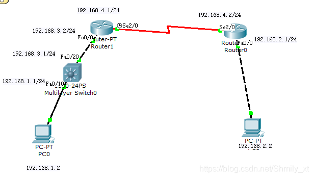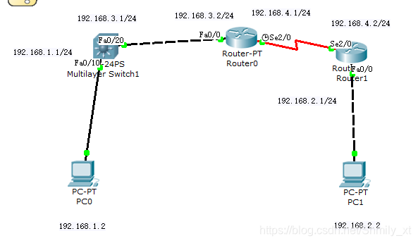 clock rate 64000 #必须配置时钟速率才可通信,单位为bps,bps比特率是指每秒传送的比特(bit)数。单位为 bps(Bit Per Second),比特率越高,每秒传送数据就越多。