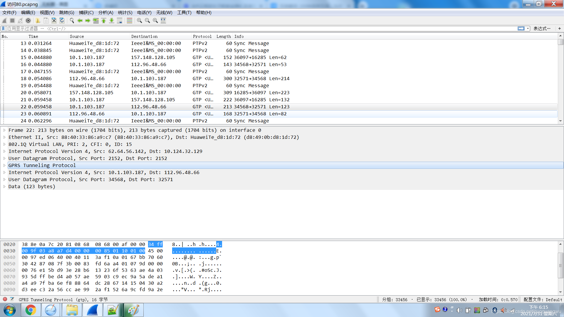 len -= header_len;//去除gtp头长度,所以如果看起gtp解码,则可以顺利去除这一层,然后重新解码ip层和传输层