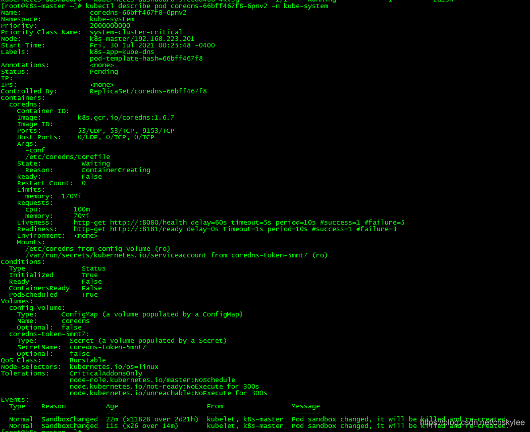 [root@k8s-master ~]# kubectl describe pod coredns-66bff467f8-nbr8d -n kube-system
