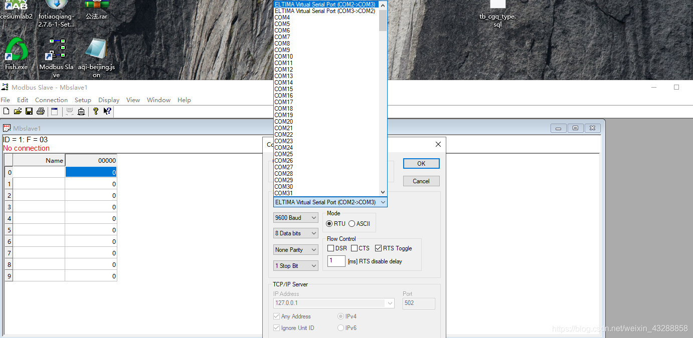 (1)、Modbus Slave是模拟传感器,连接串口的,相当于模拟的传感器