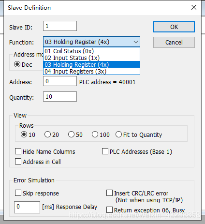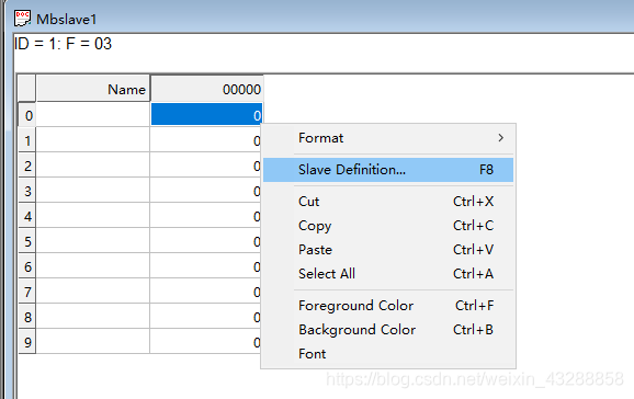 点击传感器,右键Slave Definition ,配置传感器ID,配置(03 Holding Register),线圈方式读取传感器的值