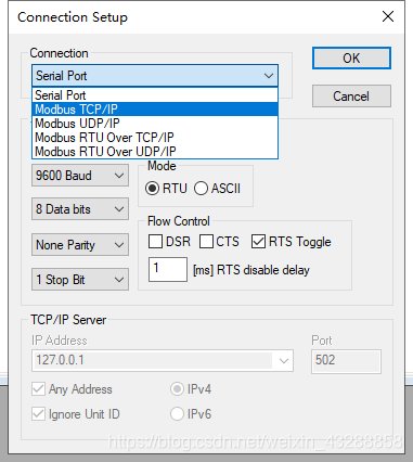 ?二、Modbus Slave以 Serial Port串口的方式连接,并且连接到COM2端口下面