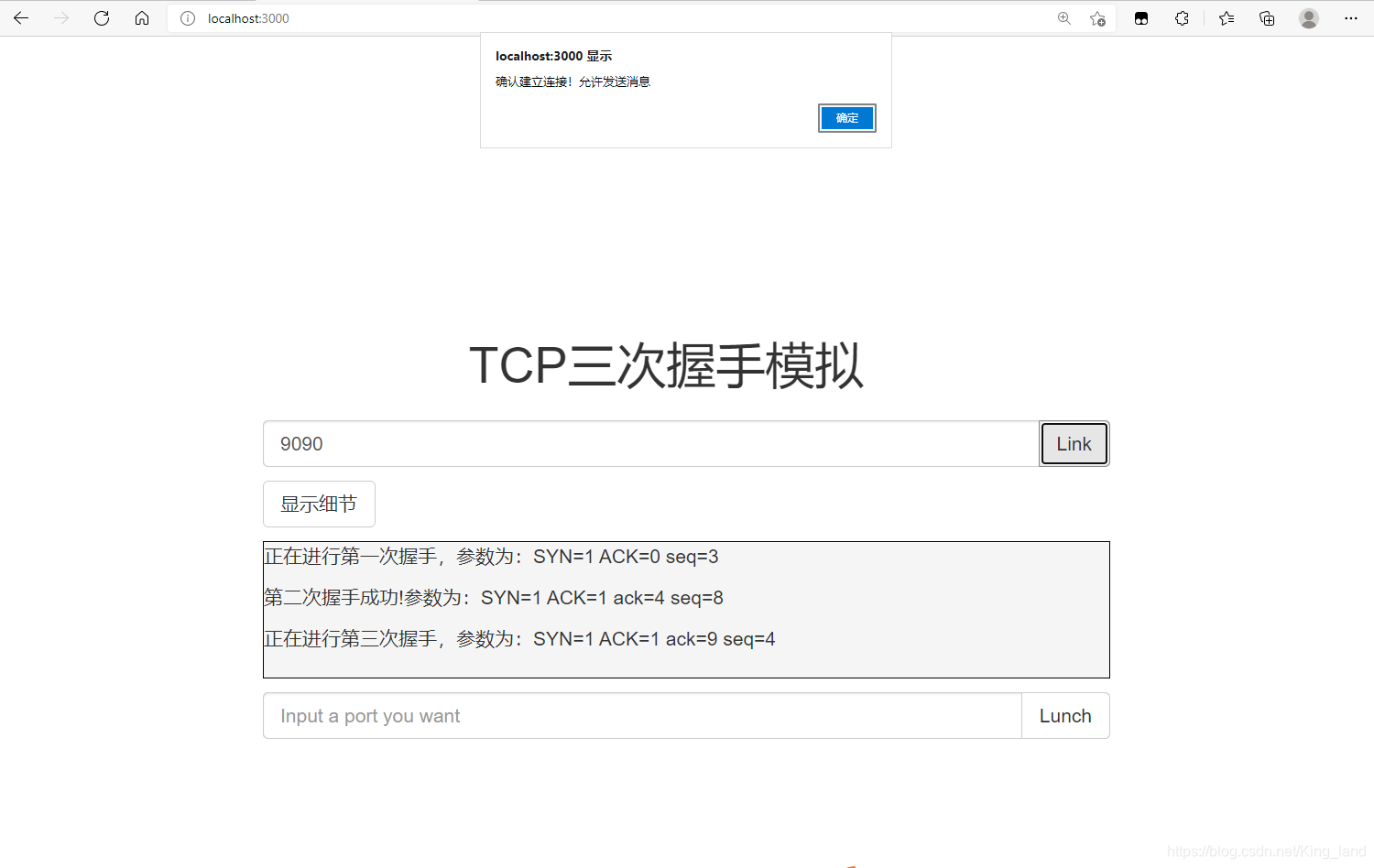 本博客是计算机网络课程设计任务----模拟TCP三次握手。