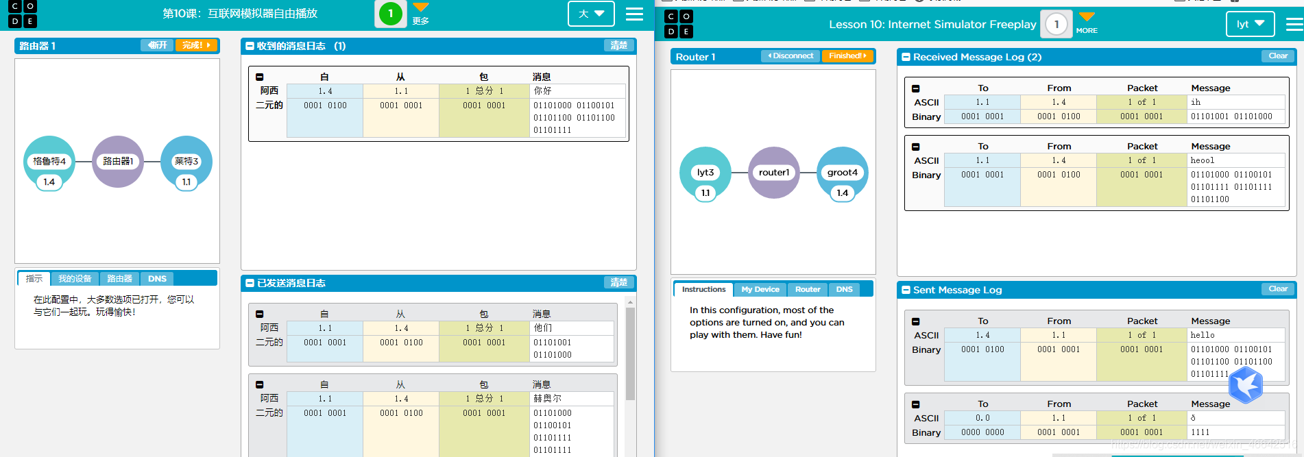 任务二:用模拟器收发信息 在code.org上完成互联网模拟器的系列任务(https://studio.code.org/s/netsim) 如果已注册账号则无需再注册。 提示:此任务需小组内部协作才能完成。