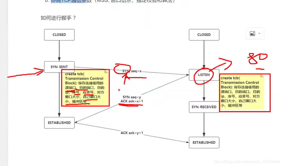 三次握手的机制是为了保证能建立一个安全可靠的连接,那么第一次握手是由客户端发起,客户端会向服务端发送一个报文,在报文里面:SYN标志位置为1,表示发起新的连接。当服务端收到这个报文之后就知道客户端要和我建立一个新的连接,于是服务端就向客户端发送一个确认消息包,在这个消息包里面:ack标志位置为1,表示确认客户端发起的第一次连接请求。以上两次握手之后,对于客户端而言:已经明确了我既能给服务端成功发消息,也能成功收到服务端的响应。但是对于服务端而言:两次握手是不够的,因为到目前为止,服务端只知道一件事,客户端发给我的消息我能收到,但是我响应给客户端的消息,客户端能不能收到我是不知道的。所以,还需要进行第三次握手,第三次握手就是当客户端收到服务端发送的确认响应报文之后,还要继续去给服务端进行回应,也是一个ack标志位置1的确认消息。通过以上三次连接,不管是客户端还是服务端,都知道我既能给对方发送消息,也能收到对方的响应。那么,这个连接就被安全的建了。