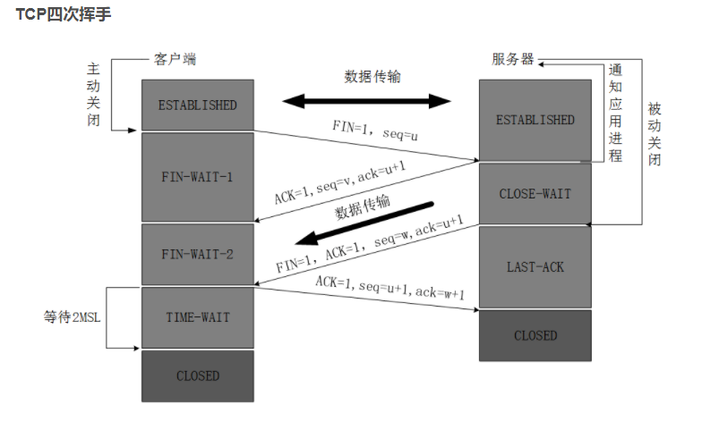 一句话,主要防止已经失效的连接请求报文突然又传送到了服务器,从而产生错误。 如果使用的是两次握手建立连接,假设有这样一种场景,客户端发送了第一个请求连接并且没有丢失,只是因为在网络结点中滞留的时间太长了,由于TCP的客户端迟迟没有收到确认报文,以为服务器没有收到,此时重新向服务器发送这条报文,此后客户端和服务器经过两次握手完成连接,传输数据,然后关闭连接。此时此前滞留的那一次请求连接,网络通畅了到达了服务器,这个报文本该是失效的,但是,两次握手的机制将会让客户端和服务器再次建立连接,这将导致不必要的错误和资源的浪费。 如果采用的是三次握手,就算是那一次失效的报文传送过来了,服务端接受到了那条失效报文并且回复了确认报文,但是客户端不会再次发出确认。由于服务器收不到确认,就知道客户端并没有请求连接。  为什么客户端最后还要等待2MSL? MSL(Maximum Segment Lifetime),TCP允许不同的实现可以设置不同的MSL值。 第一,保证客户端发送的最后一个ACK报文能够到达服务器,因为这个ACK报文可能丢失,站在服务器的角度看来,我已经发送了FIN+ACK报文请求断开了,客户端还没有给我回应,应该是我发送的请求断开报文它没有收到,于是服务器又会重新发送一次,而客户端就能在这个2MSL时间段内收到这个重传的报文,接着给出回应报文,并且会重启2MSL计时器。 第二,防止类似与“三次握手”中提到了的“已经失效的连接请求报文段”出现在本连接中。客户端发送完最后一个确认报文后,在这个2MSL时间中,就可以使本连接持续的时间内所产生的所有报文段都从网络中消失。这样新的连接中不会出现旧连接的请求报文。 为什么建立连接是三次握手,关闭连接确是四次挥手呢? 建立连接的时候, 服务器在LISTEN状态下,收到建立连接请求的SYN报文后,把ACK和SYN放在一个报文里发送给客户端。 而关闭连接时,服务器收到对方的FIN报文时,仅仅表示对方不再发送数据了但是还能接收数据,而自己也未必全部数据都发送给对方了,所以己方可以立即关闭,也可以发送一些数据给对方后,再发送FIN报文给对方来表示同意现在关闭连接,因此,己方ACK和FIN一般都会分开发送,从而导致多了一次。 如果已经建立了连接,但是客户端突然出现故障了怎么办? TCP还设有一个保活计时器,显然,客户端如果出现故障,服务器不能一直等下去,白白浪费资源。服务器每收到一次客户端的请求后都会重新复位这个计时器,时间通常是设置为2小时,若两小时还没有收到客户端的任何数据,服务器就会发送一个探测报文段,以后每隔75分钟发送一次。若一连发送10个探测报文仍然没反应,服务器就认为客户端出了故障,接着就关闭连接。