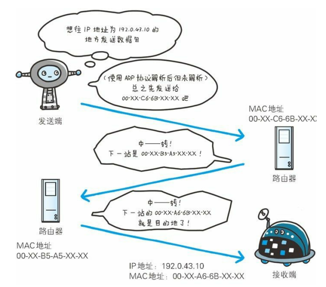 - MAC地址(Media Access Control Address): IP地址指明了节点被分配到的地址,MAC地址是指网卡所属的固定地址。IP地址可以和MAC地址进行配对。IP地址可变换,但MAC地址基本不会更改。