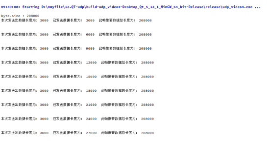 qDebug()<<"本次接受数据长度 Length of data accepted this time:"<<receivebyte.size()-5<<"已接收总量 Total received:"<<datareg.size()<<"此帧像素数据总长度为 The total length:"<<sum;