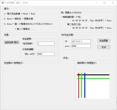 2、udp传图的数据不经过压缩按:R(8bit)、G(8bit)、B(8bit)一个像素点一个像素点传输。