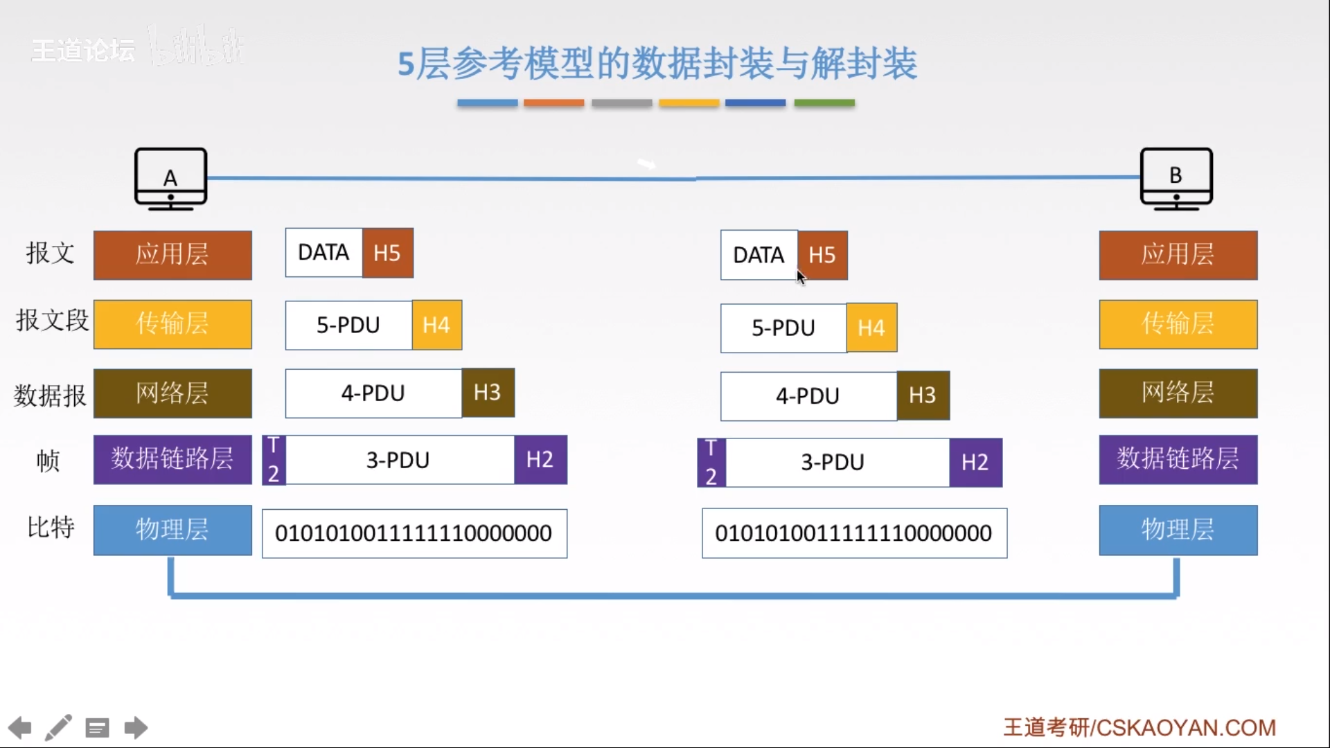 将第3、4、5层的数据单元抽出如下图,进而查看各层之间存在的数据包含关系。  总结上图:nSDU + nPCI = nPDU = (n-1)SDU (ps:SDU可以理解成含金量较高的有用的数据;PCI可以理解为控制信息;PDU是继续往下层传送的数据单位)