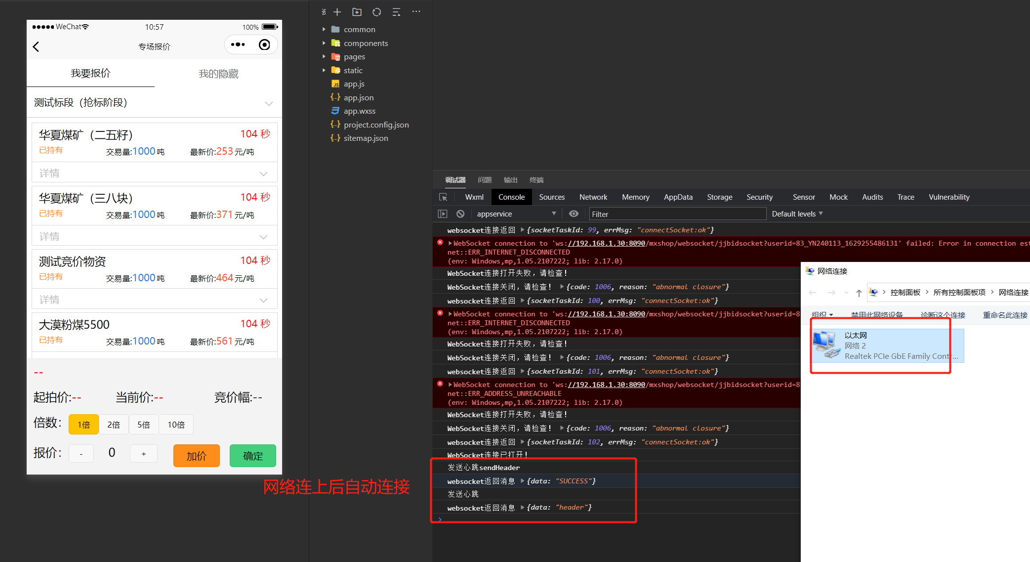 VM8 asdebug.js:1 WebSocket connection to 'ws://192.168.1.30:8090/mxshop/websocket/jjbidsocket?userid=83_YN240113_1629249993053' failed: Error in connection establishment: net::ERR_INTERNET_DISCONNECTED(env: Windows,mp,1.05.2107222; lib: 2.17.0)