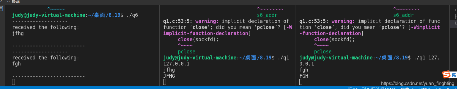 fputs(recvline,stdout);//输出printf,从recvline缓冲区中显示到stdout中