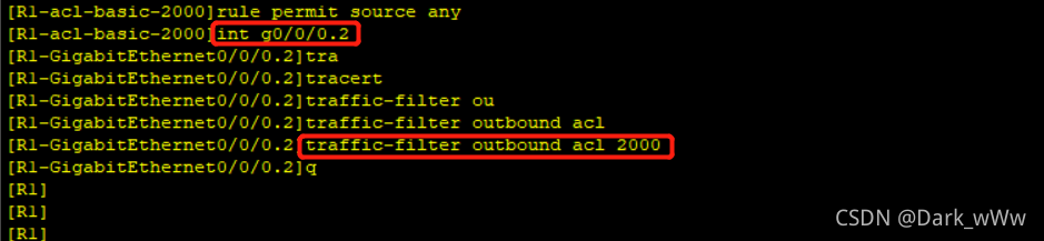 策略做好后,在入接口调用和出接口调用的区别 入接口调用的话:在本地路由器生效 出接口调用的话:对本地路由器不生效,流量将在数据转发过程中的下一台路由器生效