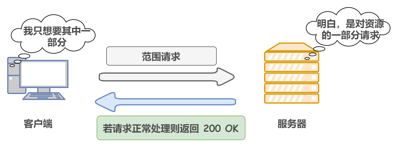 它的原理其实也非常简单,就是请求头中的Range字段和响应头的Content-Range字段的配合使用。客户端一块一块的请求服务端的资源文件,服务端也一块一块的发送回去。