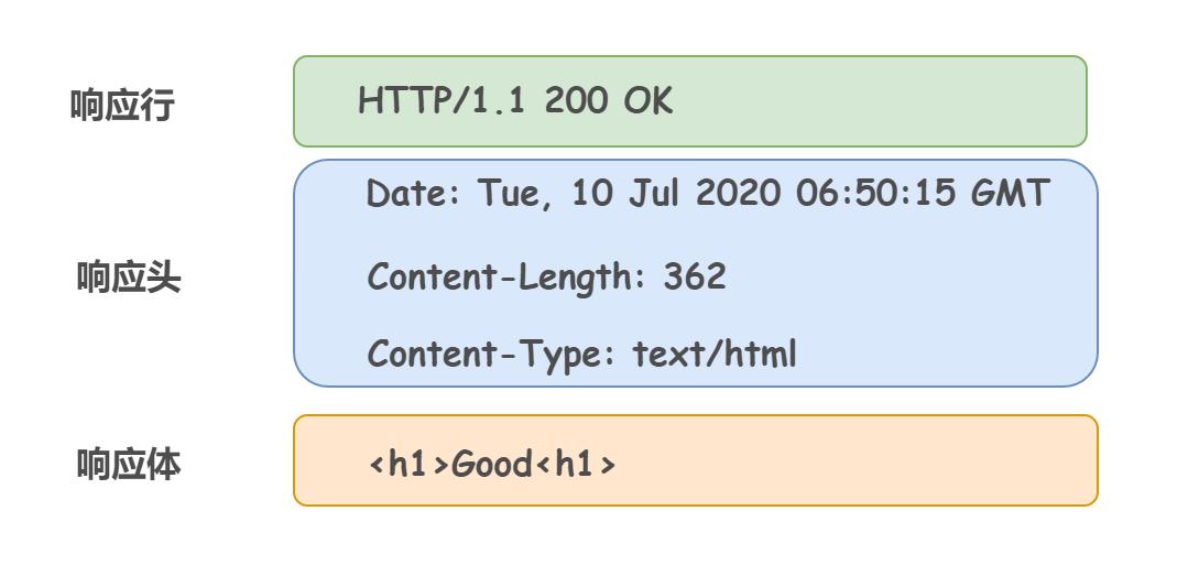 HTTP响应报文和请求报文一样,也是分成三个部分: 1.响应行 2.响应头 3.响应体  我们可以看到响应行和请求行的字段是有差异的 请求行=请求方法(GET)+资源标识符(URI)+协议版本(HTTP1.1) 响应行=协议版本(HTTP1.1)+状态码(200)+原因短语(OK)
