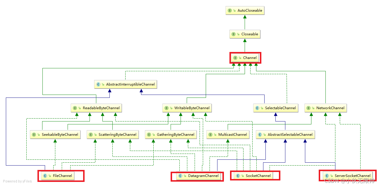 - 需要通过 InputStream, OutputStream 或 RandomAccessFile 获取 FileChannel