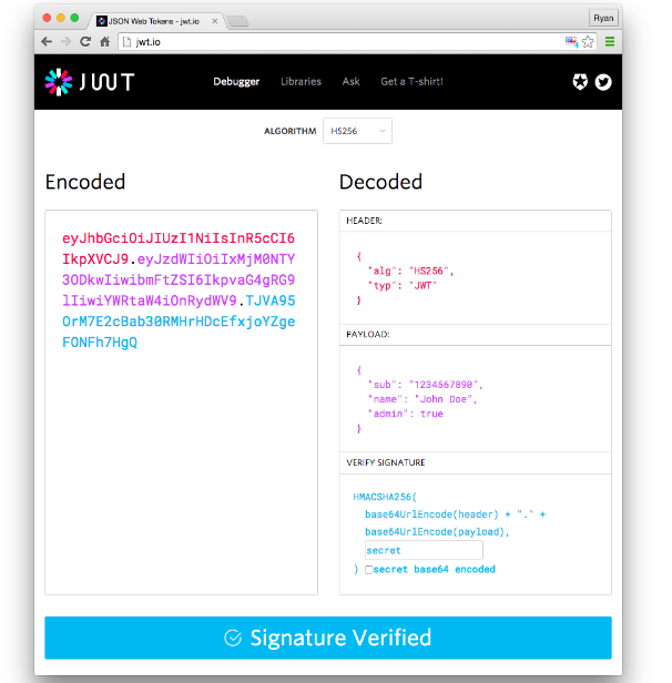 DecodedJWT verify = JWT.require(Algorithm.HMAC256(SECRET)).build().verify(token);