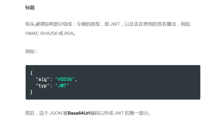 "alg": "HS256", :所使用的签名算法,例如HMAC、SHA256或RSA。