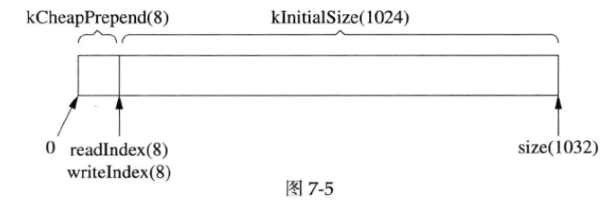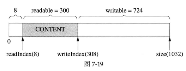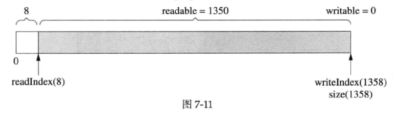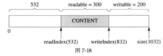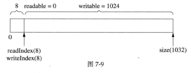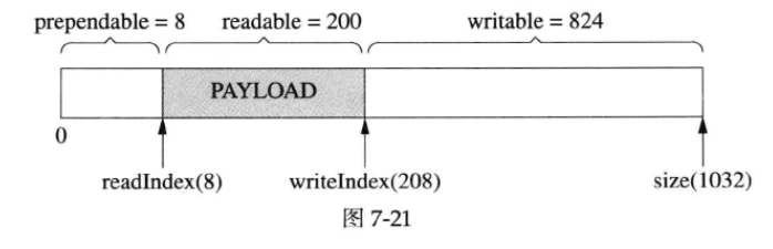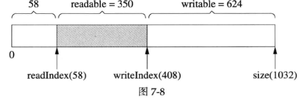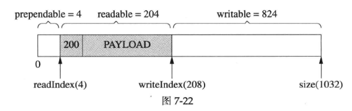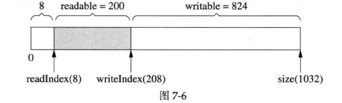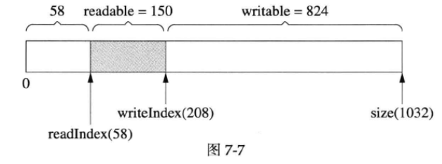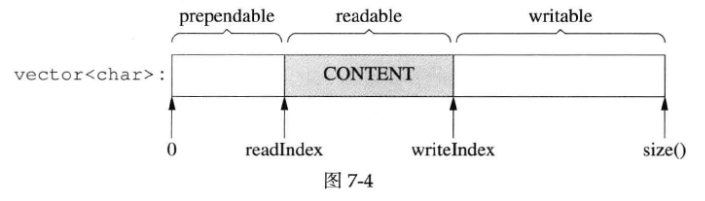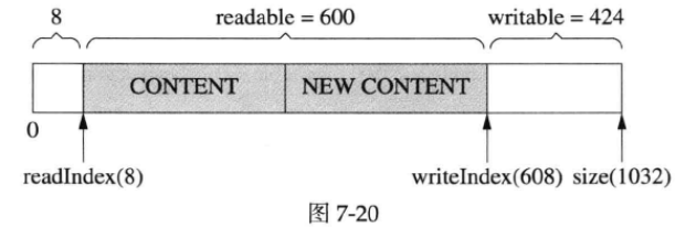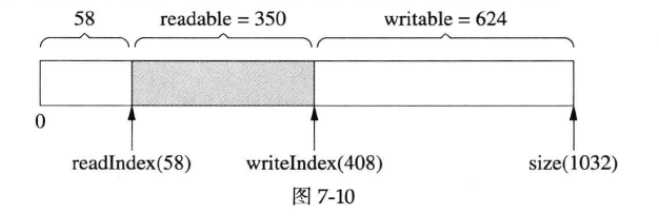 muduoBuffer 不是固定长度的,可以自动增长,是使用vector 的优点。假设当前的状态如图7-10所示。