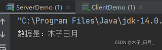 3.进行测试,启动程序,客户端发送木子日月,服务端接收数据。(这里需要先启动服务端,否则会报错)