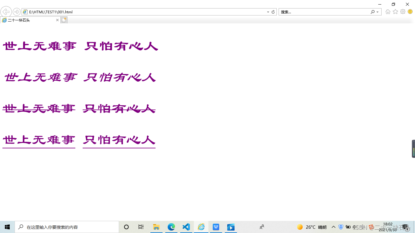 <u>世上无难事</u> <ins>只怕有心人</ins>