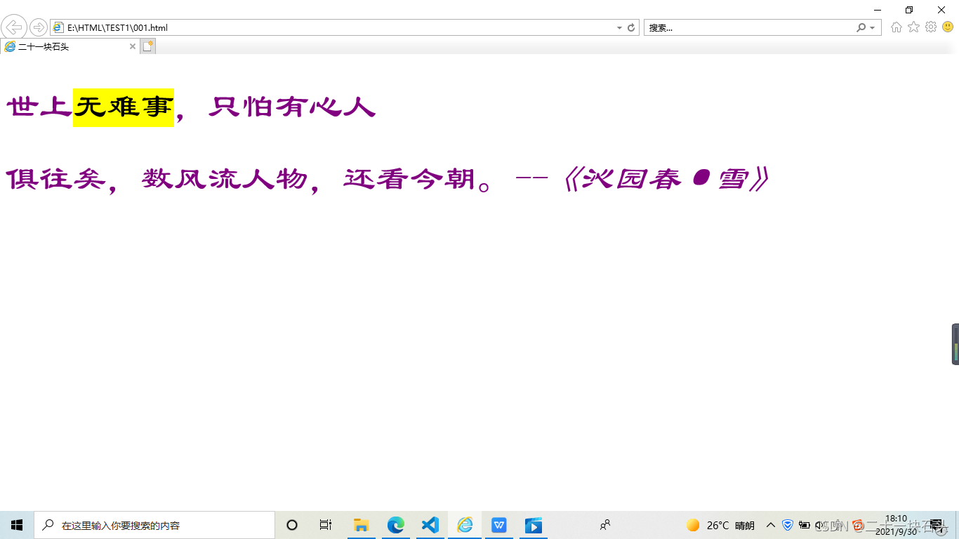 ? ? ?只表示某种特定的含义 ?? ??? ? ?? ??? A、mark:主要功能是在文本中高亮显示某些字符; ?? ??? B、cite:cite标签可以创建一个引用,用于对文档引用参考文献的说明,一旦在文档中使用了该标签,被标注的文档内容将以斜体的样式展示在页面中,以区别于段落中的其他字符。
