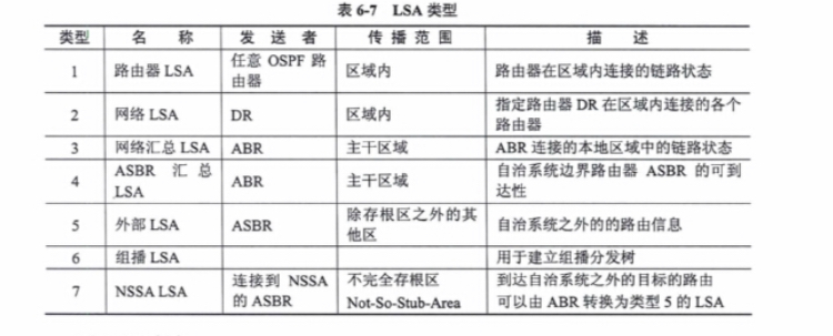 5) OSPF 报文类型 用hello报文间隔传播更新,采用目标地址 224.0.0.5 代表所有的 OSPF 路由器。在点对点网络10s更新,在在 NBMA 网络中每30s发送一次。 hello协议用于发现邻居,还用于选出区域内的指定路由器 DR和备份指定路由器 BDR。  6)OSPF的优缺点 优点 ? 链路状态协议使用了分层的网络结构,减小了 LSA 的传播范围,同时也减小了网络拓扑变化时影响所有路由器的可能性。 ? 链路状态协议使用组播来共享路由信息,并且发布的是增量式的更新消息。触发更新 ? 链路状态协议支持无类别的路由和路由汇总功能,可以使用 VLSM 和 CIDR 技术。 ? 使用 SPF 算法不会在路由表中出现环路。 缺点 对 CPU 和存储器的要求更高。链路状态协议需要维护更多的存储表。对CPU的消耗大。