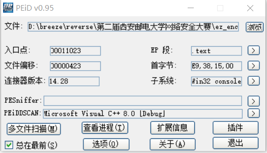 下载后打开程序:   发现缺少两个dll文件,没关系,网上搜索直接下载,放入与exe文件同一个文件夹中。之后程序就能运行了:  通过peid检查文件信息,包括文件是否加壳,文件是32位还是64位。  发现是未加壳的32位文件,放入ida中。F5找到main函数: