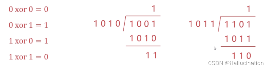 2. 将添加r个0后的数据,使用模二除法除以多项式的位串