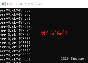 以上代码校验接收到的每一个包,并给出统计结果。长时间运行了几个小时,发现没有错误。