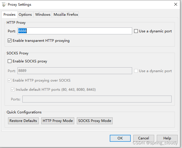 我们再去设置一下charles的端口,点击【proxy】–》【proxy seeting…】在弹窗中将戏码端口填入,以及勾选一下即可。