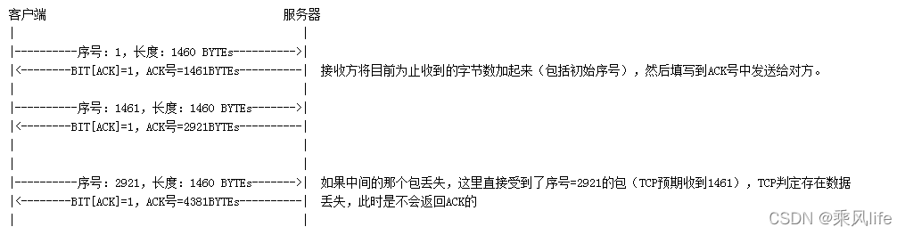 序号:发送方告知接收方该网络包所发送的数据相当于所有发送数据的第几个字节。