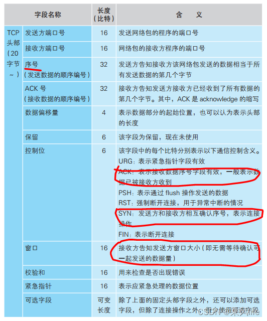 控制位:控制位一个重要用法,就是connect过程中的三次握手操作和四次挥手,TCP中经典的三次握手操作是通过控制位的BIT[SYNC]和BIT[ACK]来实现的。 SYN 设为 1 并告知初始序号这一操作仅在连接过程中出现,因此发送SYN 为 1 的网络包就表示发起连接的意思。