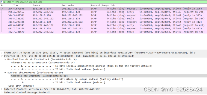 ?发出帧的目的 MAC 地址是192.168.0.178 以及返回帧的源 MAC 地址是202.202.240.102这个 MAC 地址是我ping的重庆交通大学官网的www.cqjtu.edu.cn 的ip地址的。