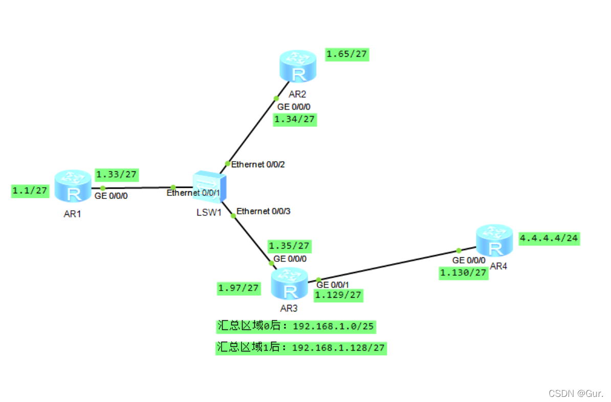 [r3-ospf-1-area-0.0.0.1]network 192.168.1.129 0.0.0.31