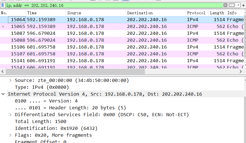 wireshark把8字节的前序和4字节的FCS都给过滤了。因为有时校验和会由网卡计算,这时wireshark抓到的本机发送的数据包的校验和都是错误的,所以默认关闭了WireShark自己的校验,就不会出现校验字段。
