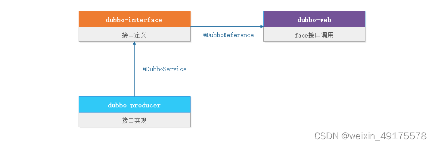 ????????【消费者】负责调用接口,通常我们在web层使用==@DubboReference==调用接口