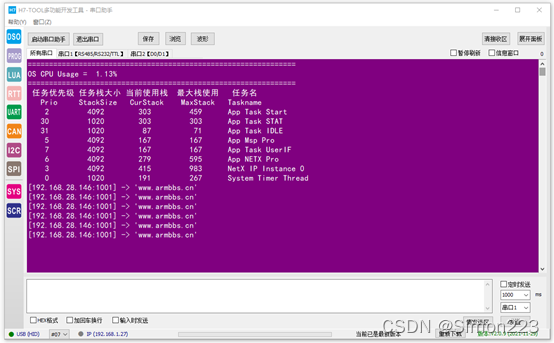 串口软件可以使用SecureCRT或者H7-TOOL RTT查看打印信息。