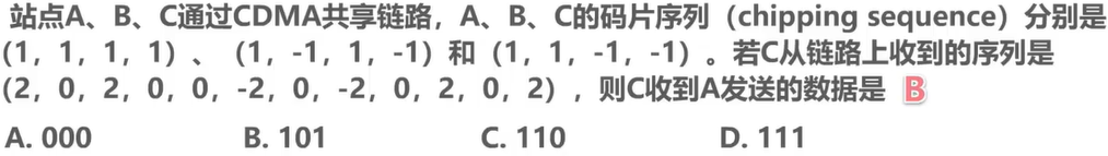 一个站如果要发送比特1,则发送它自己的m bit码片序列;