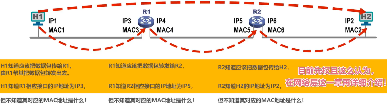 数据包转发过程中源MAC地址和目的MAC地址逐个链路(或逐个网络)改变。