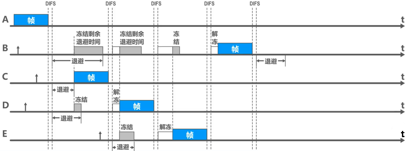 在执行退避算法时, 站点为退避计时器设置一个随机的退避时间:
