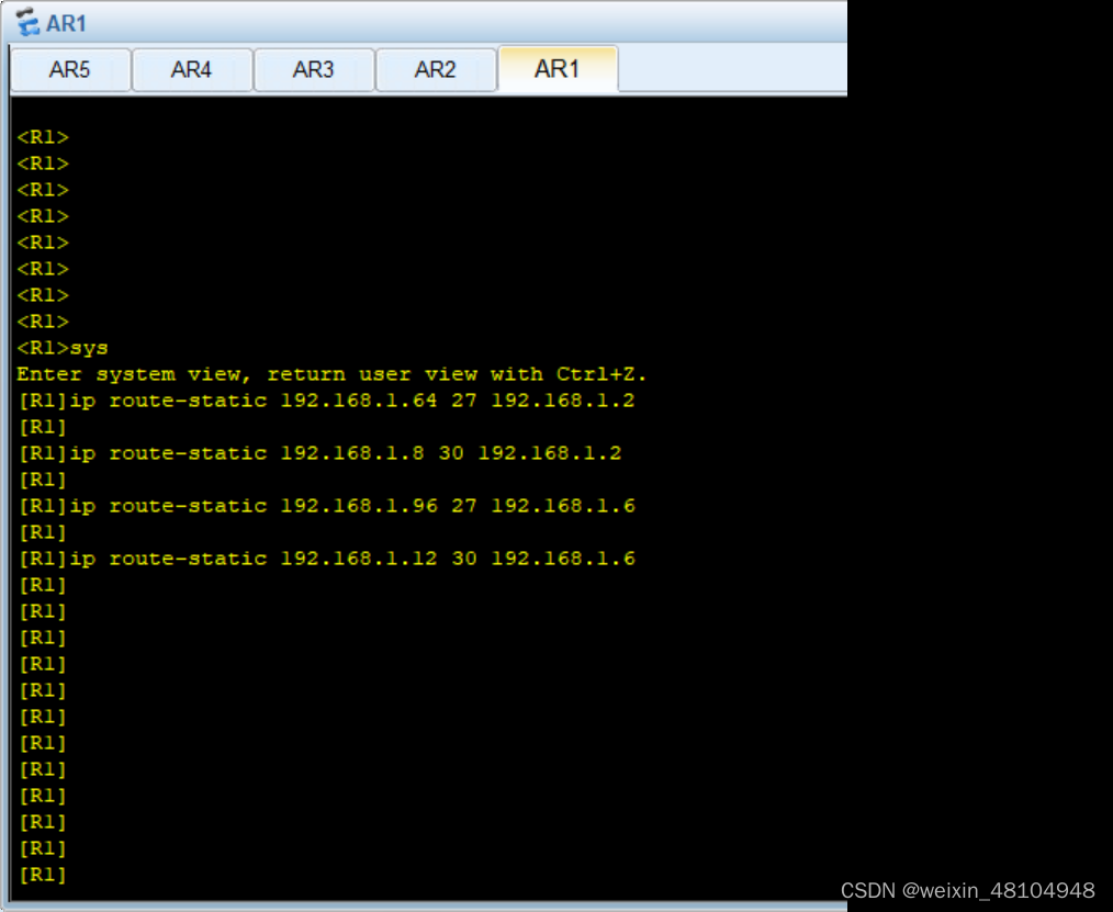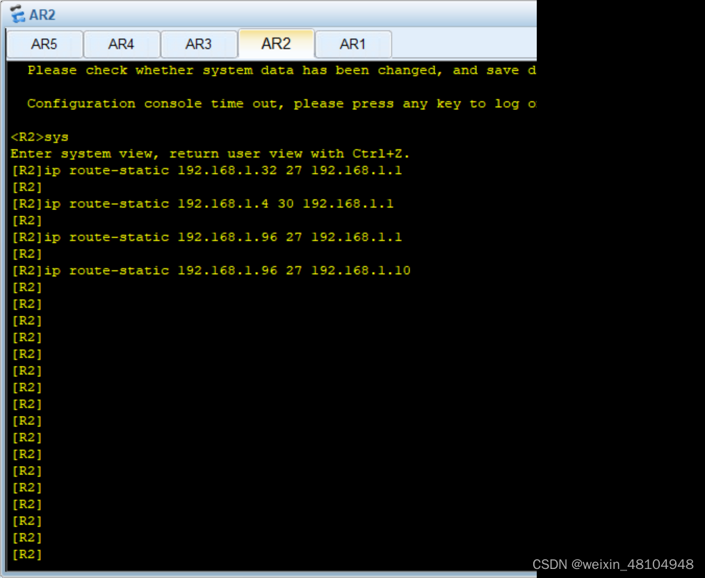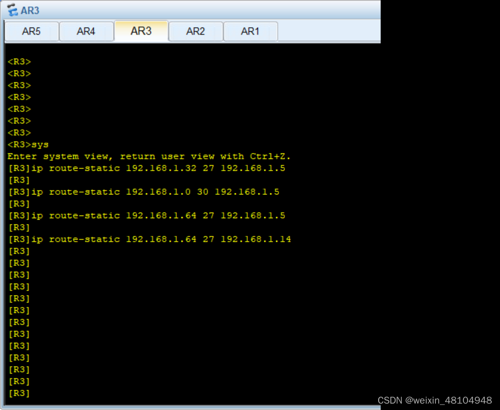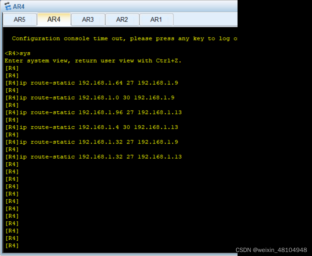 [R4]ip route-static 192.168.1.128 27 NULL 0