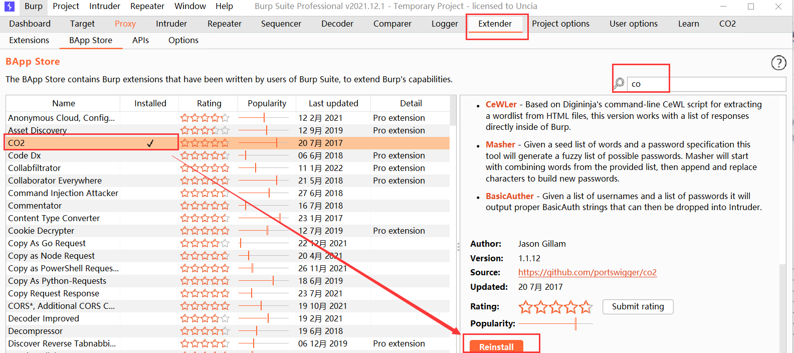 1.商店安装插件CO2  2.抓取数据包发送到插件,配置插件环境 (1).sqlmap使用的python路径 (2).sqlmap.py路径  3填入sqlmap指令参数开启扫描
